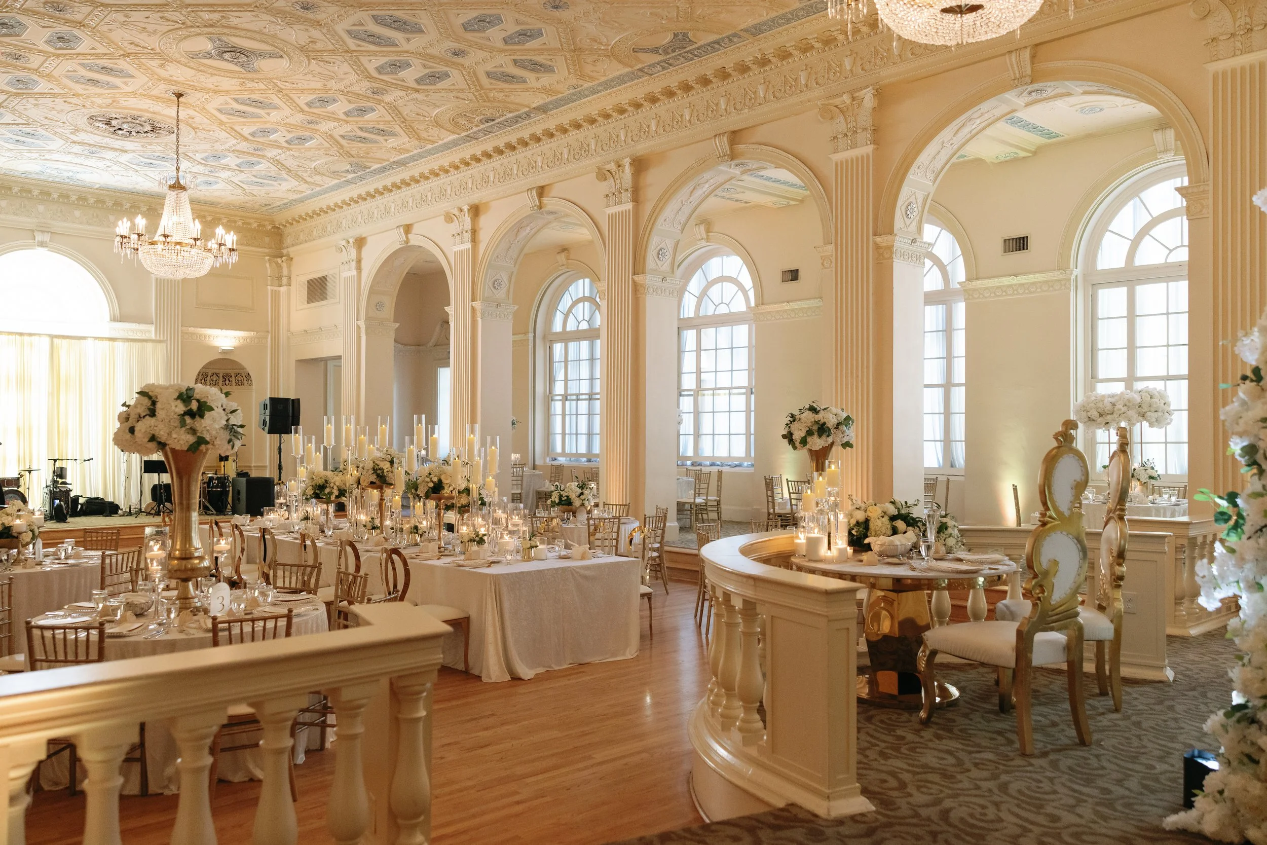 Royal Luxe combines the timeless elegance of ivory with the opulent touch of gold, creating a regal atmosphere that exudes refined luxury and classical grandeur. The design features lavish white floral arrangements atop golden pedestals, crystal candleholders, and delicate architectural details that evoke the splendor of historic palaces and the sophisticated glamour of royal celebrations.